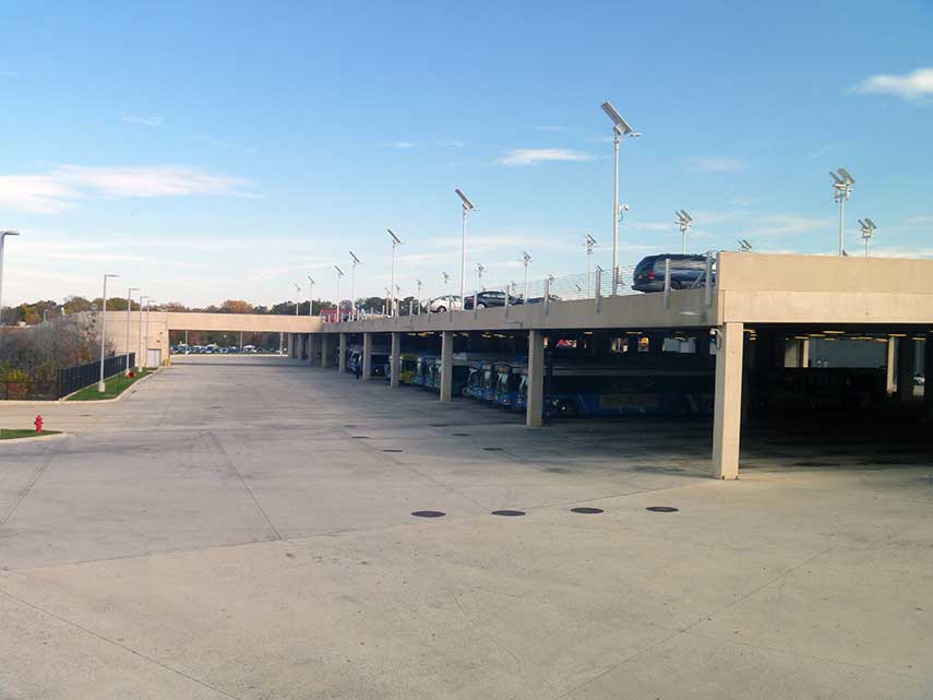 ADTEK provided design services for the new EMTOC to replace the previous undersized and outdated facility at Shady Grove as part of the County SmartGrowth initiative. The campus consists of 13 buildings on two adjacent sites. The campus accommodates parking and storage for a fleet of 200 buses, along with 581 employees and a fleet of heavy-duty maintenance vehicles. Building sizes are 100,000-sf+. The 12 buildings ADTEK provided structural design services for feature various structural systems including high bay steel framing, masonry and wood framing. ADTEK also had to design and relocate sanitary sewers, storm drains and waterlines. A road was extended and a stream relocated.